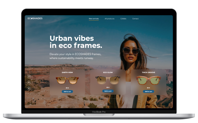 En stilren och responsiv webbplats för ett företag med hållbara solglasögon. Fokus låg på produktpresentation, tydlig struktur och visuell identitet.